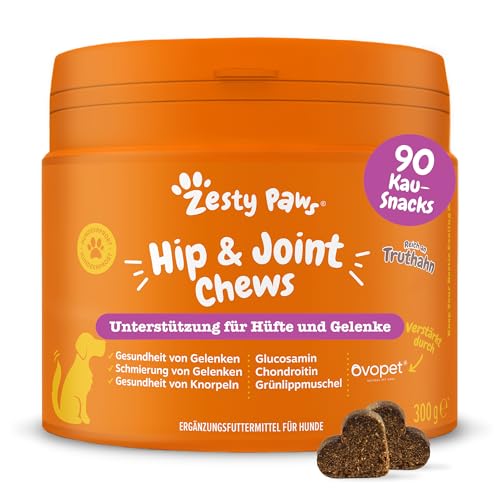 Zesty Paws Kausnacks für Hüft- und Gelenkbeweglichkeit | Gelenktabletten Hund | Hüft- und Gelenkkauartikel | Hunde Kauartikelmit Glucosamin, Chondroitin und Ovopet + Vitamin C und E | Truthahn | 90 st