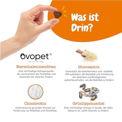 Mit Ovopet – einer Kollagenquelle aus Eierschalenmembranen, die die Gelenkflexibilität und -elastizität mit nachgewiesenen Ergebnissen bei Hunden fördert.