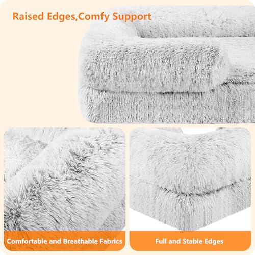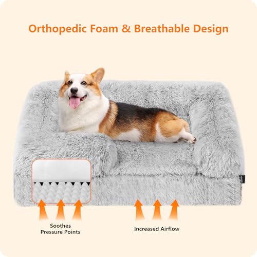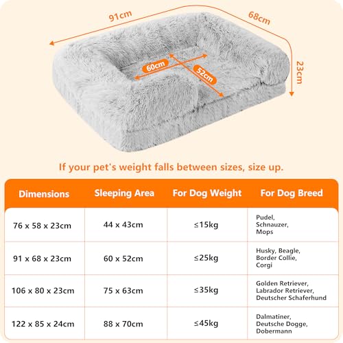 Orthopädisches Hundebett, Hundesofa, hohen Rand, Hundekissen, Hundekorb, Abnehmbar und waschbar, Mittelgroße Hunde, 91 x 68 x 20 cm, Hellgrau
