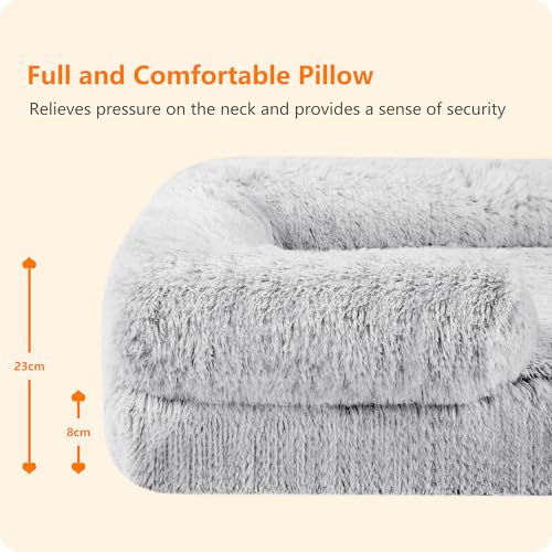 【Verbesserter Komfort】Die erhöhten, gut gepolsterten Ränder des Hundebetts bietet optimalen Halt für den Kopf. Hochwertiger, beruhigender und warmer PV-Plüsch schafft einen warmen, sicheren Ort zum Kuscheln. Der rutschfeste Boden sorgt für Stabilität, verhindert das Ausrutschen und schützt Ihr Haustier.