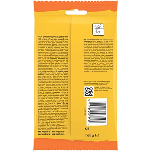 Köstliche Schmackos Leckerlis von Pedigree, enthalten keine künstlichen Farb- oder Aromastoffe.