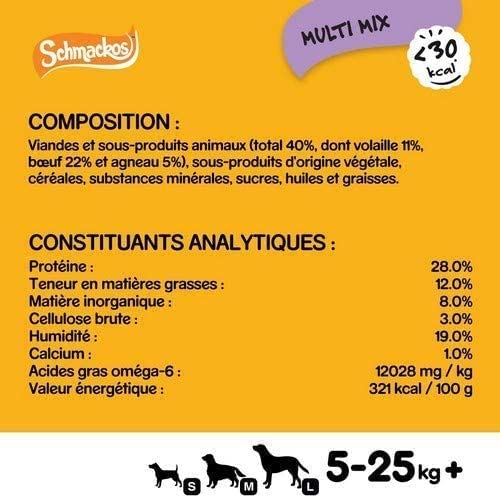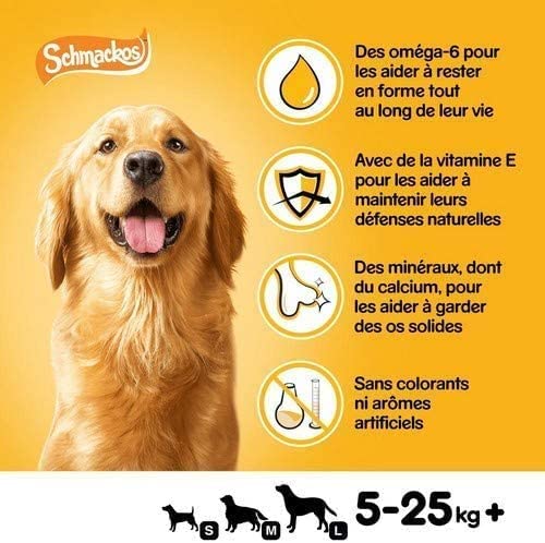 Pedigree Schmackos Hundesnacks enthalten Omega 3, was das Wohlbefinden unterstützt, Vitamine, um die natürlichen Abwehrkräfte zu erhalten und Mineralien unterstützen einen starken Knochenbau.