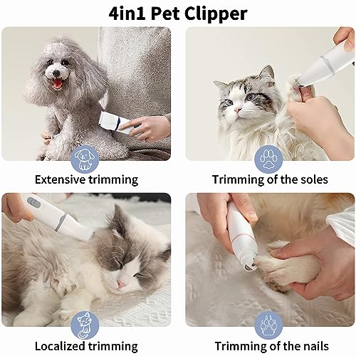 [4in1 Multifunktional Schermaschine Hund Katzen] Mit 4 abnehmbaren Schneideköpfen (Ganzkörper, Teilkörper, Pfoten, Krallen) deckt die Scherenmaschine Gesicht, Ohren, Körper, Pfoten und Nägel ab. Einfache Installation für kostengünstige Haustierpflege – ideal für tägliche Pflege oder professionelle Nutzung
