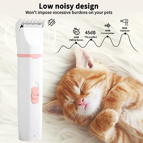 4in1 Leise Hundeschermaschine für Kleine & Mittelgroße Hunde Katzen, Usb Aufladbar Pfotentrimmer für Hunde mit 4 Abnehmbare Multifunktions-Schneidköpfen für Augen/Ohren/Pfoten/Nagel (Rosa)
