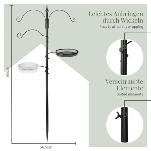 WETTERFEST & LANGLEBIG – Die Vogelfutterstation aus rostfreiem, wetterfestem Metall passt mit einer Höhe von 1,95 Metern perfekt in Deinen Garten und bietet Wildvögeln sicheren Zugang zu Futter und Wasser – Ein Futterteller und eine Vogeltränke sind im Lieferumfang enthalten!