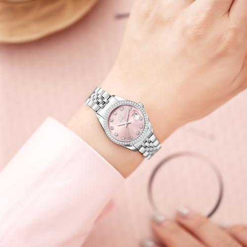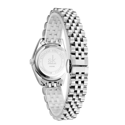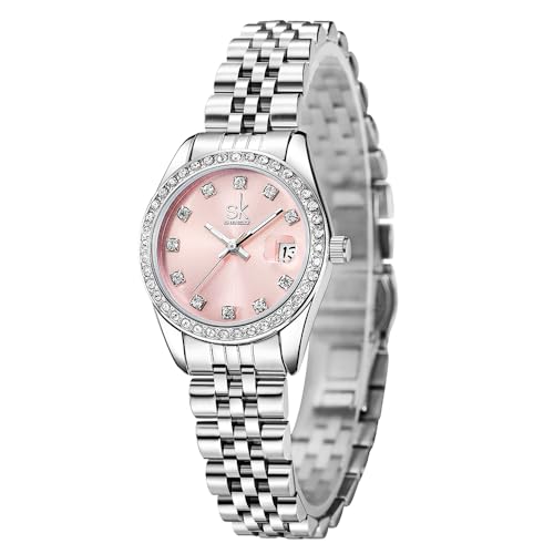 SHENGKE Women’s Crystal akzentuiert mit soliden Legierung Stahlband Uhr Elegantes Kleid Quarz Kalender Uhren für Frauen